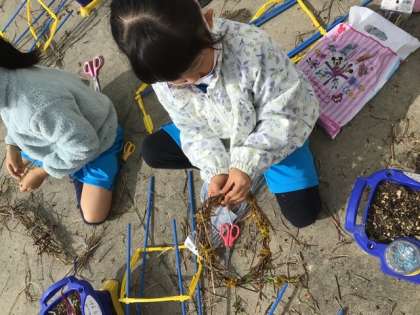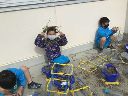 今日は、あさがおのつるでリースを作りました。