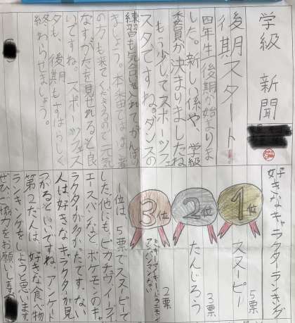 後期の係が、順調にスタートしました。創意工夫のある企画、呼びかけに感心させられます。学習係さんが雑学クイズを出したり、新聞係さんがみんなにアンケートをとりながら学級新聞を書いたりしています。他の係も、メンバーで仕事内容を分担するなどして頑張っています。