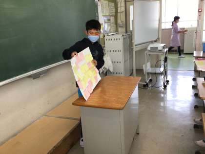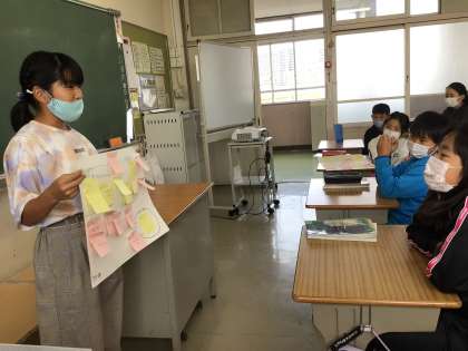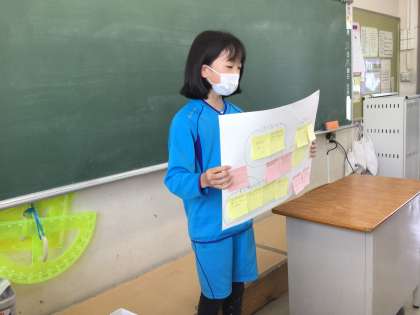 班で話し合ったことを全体に発表しました。