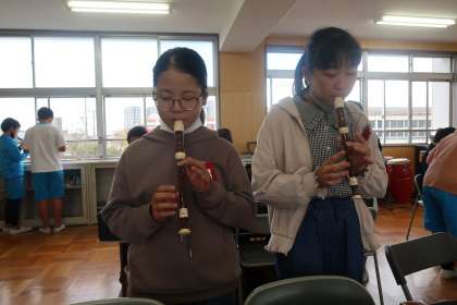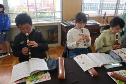音楽の授業の様子です。「メヌエット」をリコーダーで演奏していました。正確に音が出せるようになってきました。