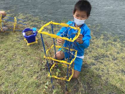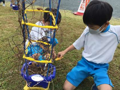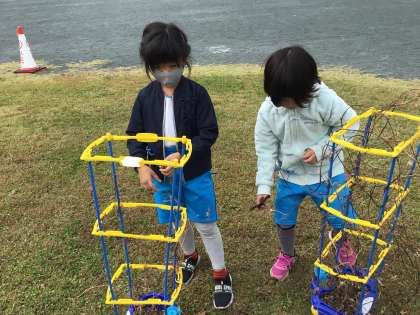 アサガオのツルでリース作りをしました。動画を見て、作り方を予習して取り組んでいます。