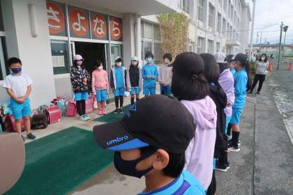 ボランティア後のミーティングの様子です。朝からご苦労様でした。