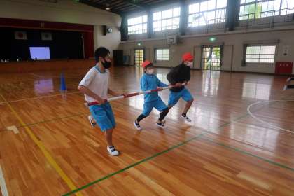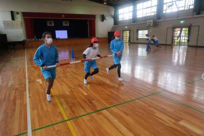 クラスを2チーム分けて練習をしました。1つの学級での参加人数を36名としているので、2回走る子もいます。