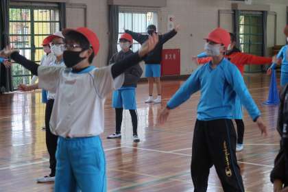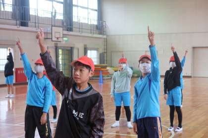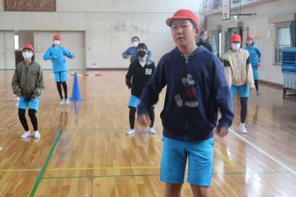 1組の体育の授業です。準備運動の様子です。ダンスをしました。
