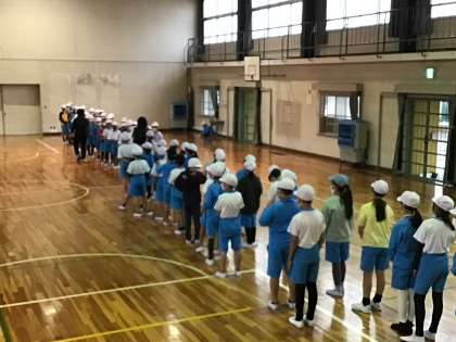 雨天のため、体育館で練習しています。