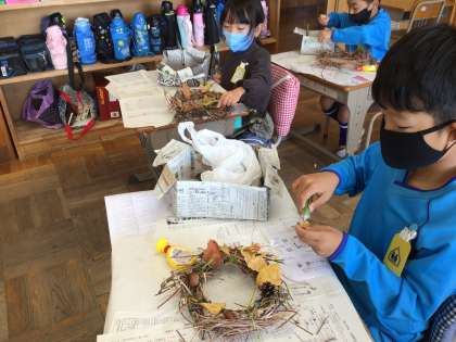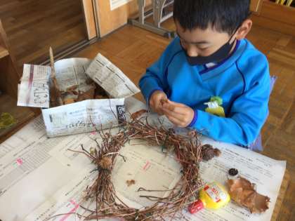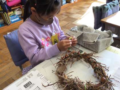 リースに葉を飾るのも、とっても素敵ですね。