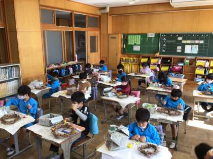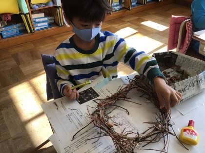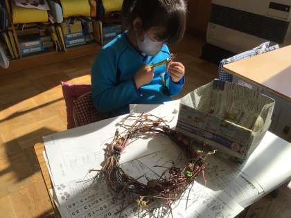 リース作りに、みんな夢中です。