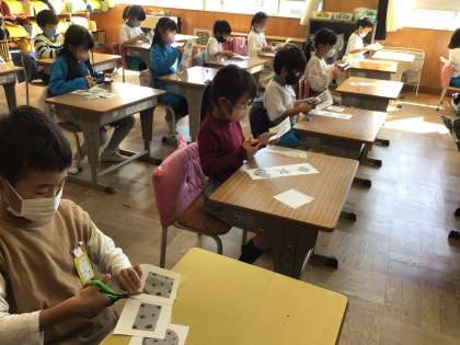 楽しいジェスチャーを教えてもらい、みんなでやってみたり、かわいいクッキーを切り取り、ゲームをするじゅんびをしたりしました。