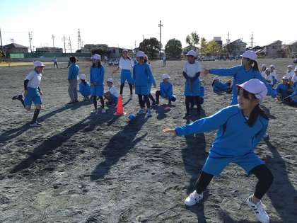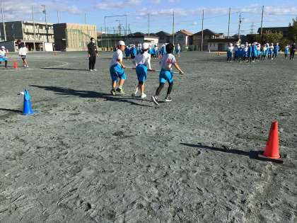 5年生は、リレーと台風の目をします。