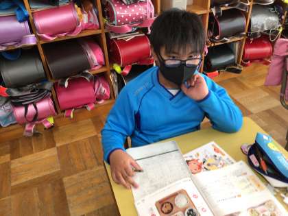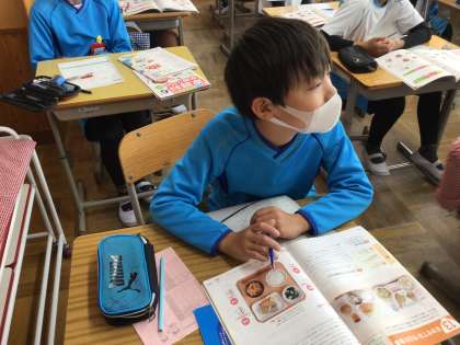 家庭科の授業です。調理実習に向けて献立の立て方のポイントを学習していました。