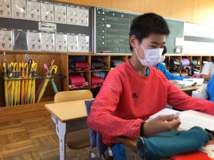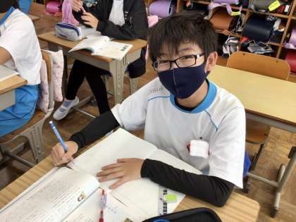 国語の授業です。「海のいのち」の本文を読んでいました。明るい雰囲気の授業で、盛り上がっていました。