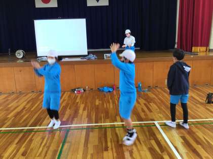 Exダンス体操を練習しました。。今年は5年生オリジナルの振り付けがあります。