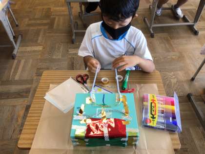 飾りがたくさん、付きました。ボタンやリボン、おりがみにクリップ。見ているだけで、楽しくなってきます。