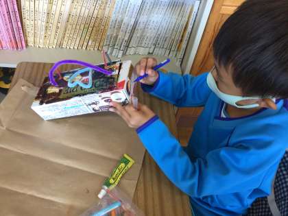 おもしろい飾りがついていますよ。材料の工夫が、たくさんですね。
