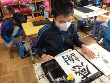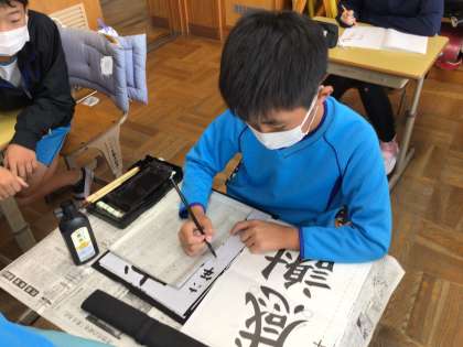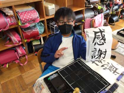 授業も終盤です。上手にかけたものに名前を記入しています。