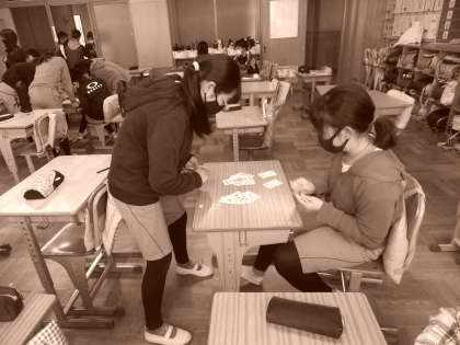 仲良くカードゲームをしたり、学級をよくするための話し合いをしたりしていました。