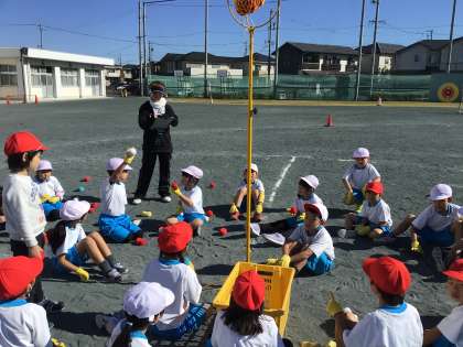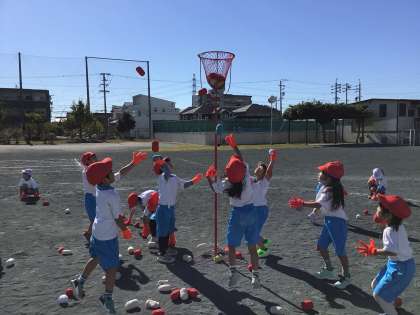 今日は、クラスごとに玉入れの作戦会議をしてから取り組みました。