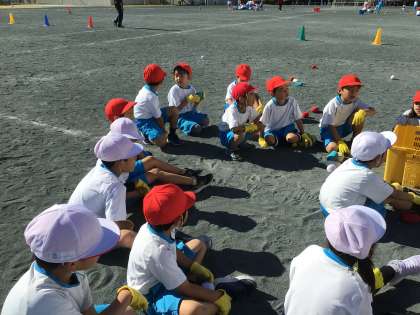 玉入れの作戦会議です。クラスごとに、話し合いをしました。