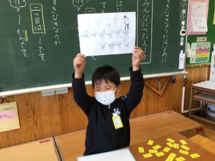 「すきなきょうかは なにかな」の学習です。自分の好きな教科を伝え、理由も話しました。みんなの前で、堂々と発表する姿に、成長を感じました。
