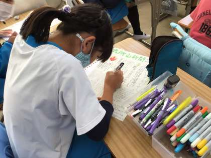 カラーペン、名前ペンを使って仕上げをしています。