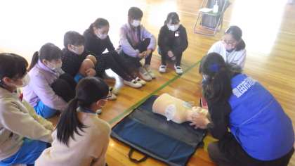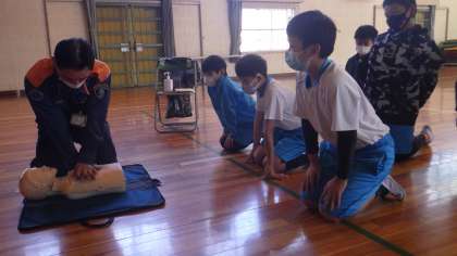 消防署の方に来ていただき、心肺蘇生法やAEDの使い方を教えていただきました。
