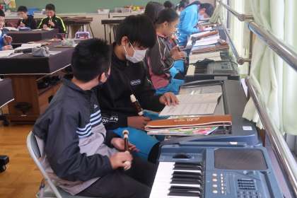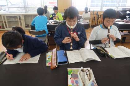 リコーダーが得意な子が多く、いろいろな曲を演奏していました。楽しい雰囲気の中での授業でした。