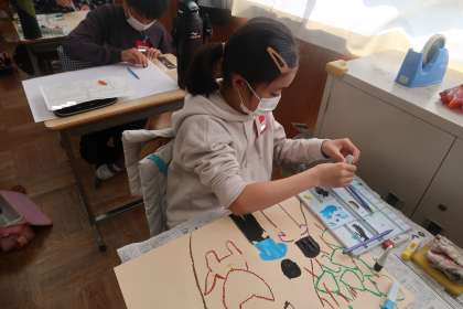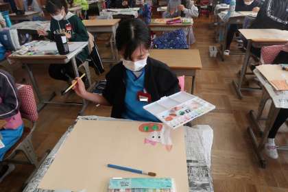2組の図工の授業です。読書感想画を描いています。