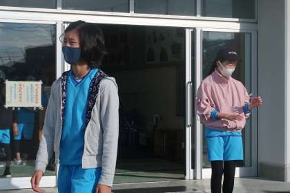 挨拶ボランティアの様子です。天気もよく、元気のよい挨拶の声が響いていました。