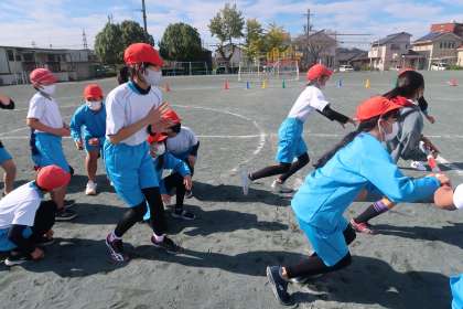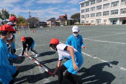 両端の2人が、棒を持って、みんなの下を潜らせます。