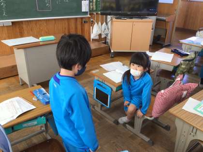 みんなに発表する前に、ペアの子と練習です。