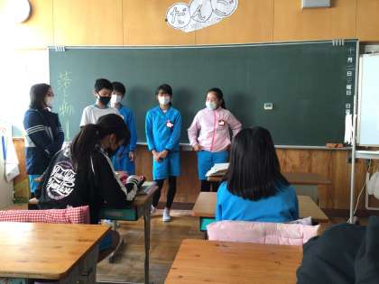 今日の0時間目の様子です。学級リーダーが学級をよりよくするための取組の内容をみんなに伝えていました。