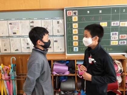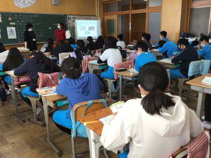 地球に住む生き物について英語で表現しています。ペア学習も行っています。