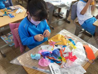 ひらひらゆれると面白そうな飾り方を考えています。