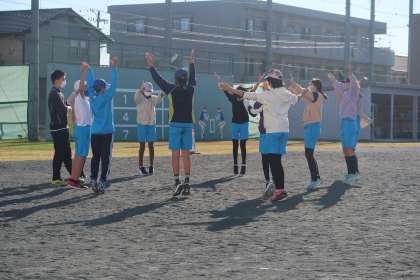 ダンスリーダーの様子です。打ち合わせをした後に芝生の前で元気よく練習をしていました。