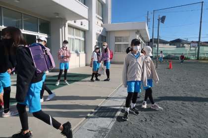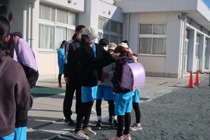 朝から元気よく、昇降口が同じ1年生とよく遊んでいます。