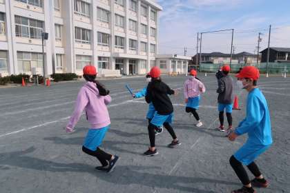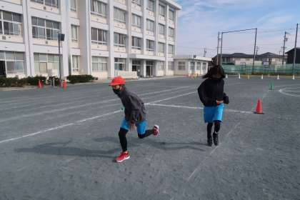 学級での練習です。リレーのバトンパスの練習をしました。