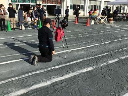 保護者の皆様は運動場で