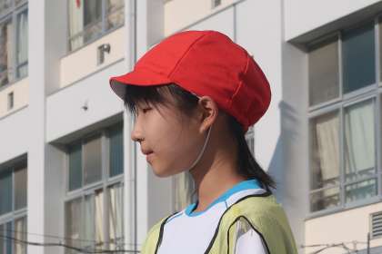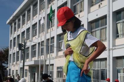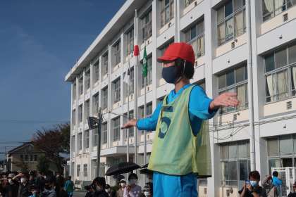 ダンスリーダーの6年生です。指令台の上でダンスをしました。とても大きな振りで、キレのあるダンスをしていました。