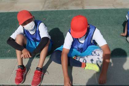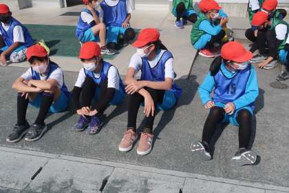 5年生の競技が終わり、出番を待っている6年生です。