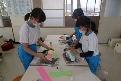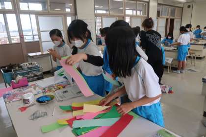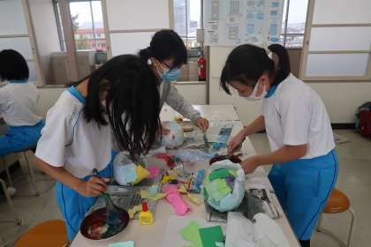 最後のアートクラブの様子です。風船を膨らませて、紙を貼っていました。