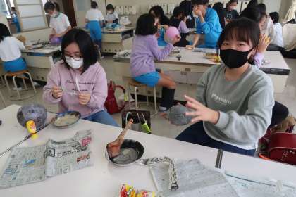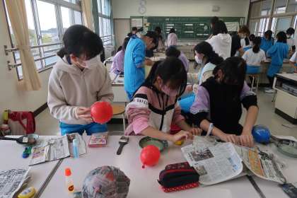 今年度最後のアートクラブの様子です。膨らませた風船に和紙や色紙を貼って惑星を作っていました。