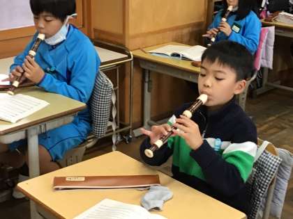 4-2は1月の音楽発表会に向けてリコーダーの練習に取り組んでいます。