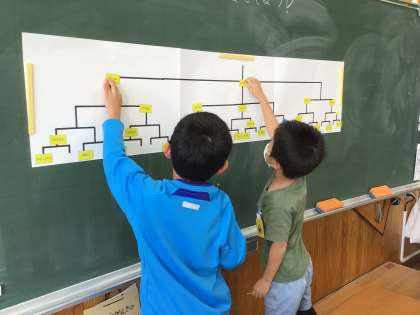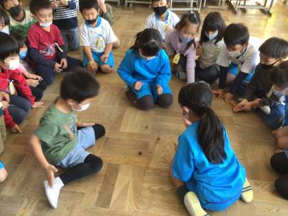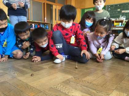 トーナメント戦では、みんなが見守る中行われ、どんぐりこまの動きに集中しました。