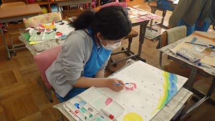 図工では、読書感想画の制作を行っています。