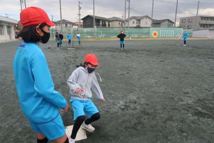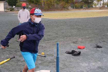 3組もティーボールのゲームをしました。男女混合チームでゲームを行いました。
