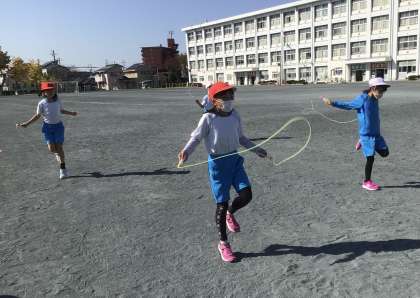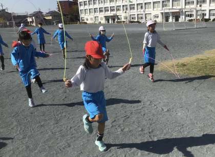 なわとびを始めました。前とび、後ろとびなど、いろいろな跳び方を練習しました。