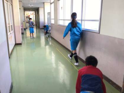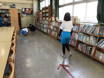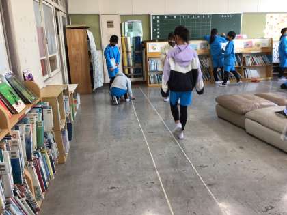 10歩を5回を班で協力して、測りました。