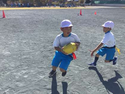 今日は「タグラグビー」に挑戦です。