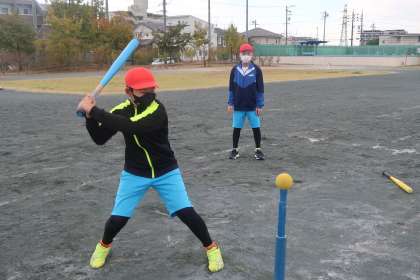 2組の体育の授業です。ティーボールのゲームを行いました。