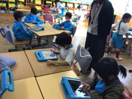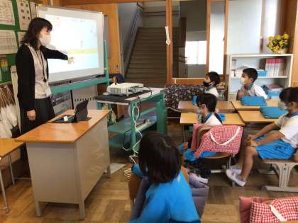ICT支援員の先生と一緒に「スクラッチJr.」で学習しました。